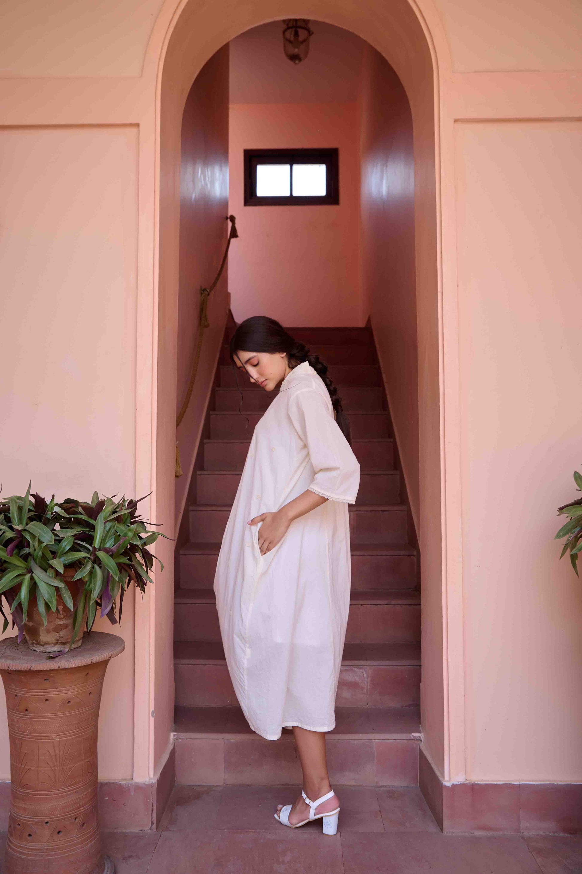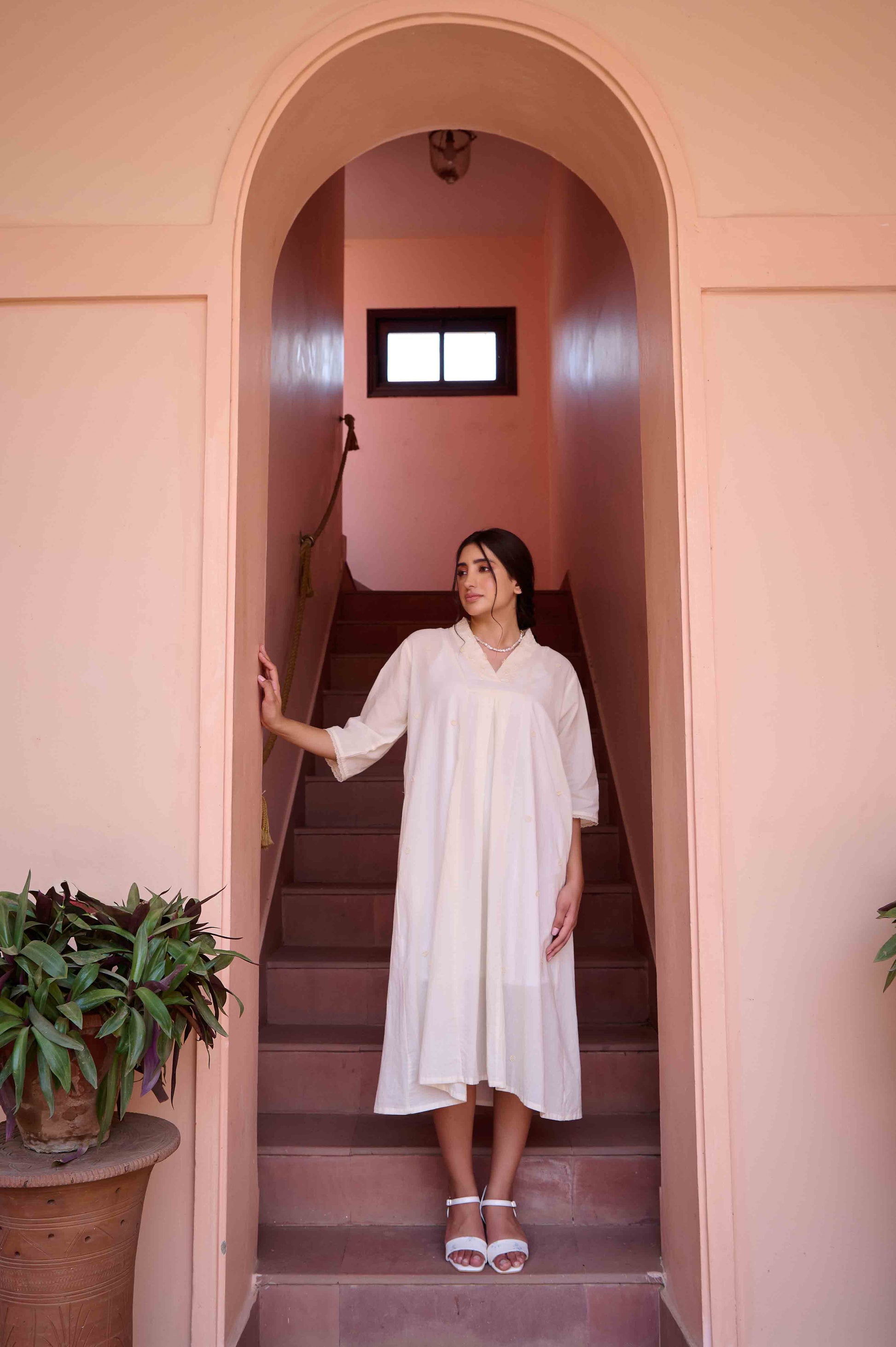 Embrace effortless elegance with our designed to captivate with every detail. Featuring a flattering V neckline adorned with tone-on-tone embroidery, this dress exudes understated sophistication. Organza flower details delicately enhance the neckline, adding a touch of texture and charm. The sleeves are adorned with intricate lace detail, further enhancing its feminine allure.