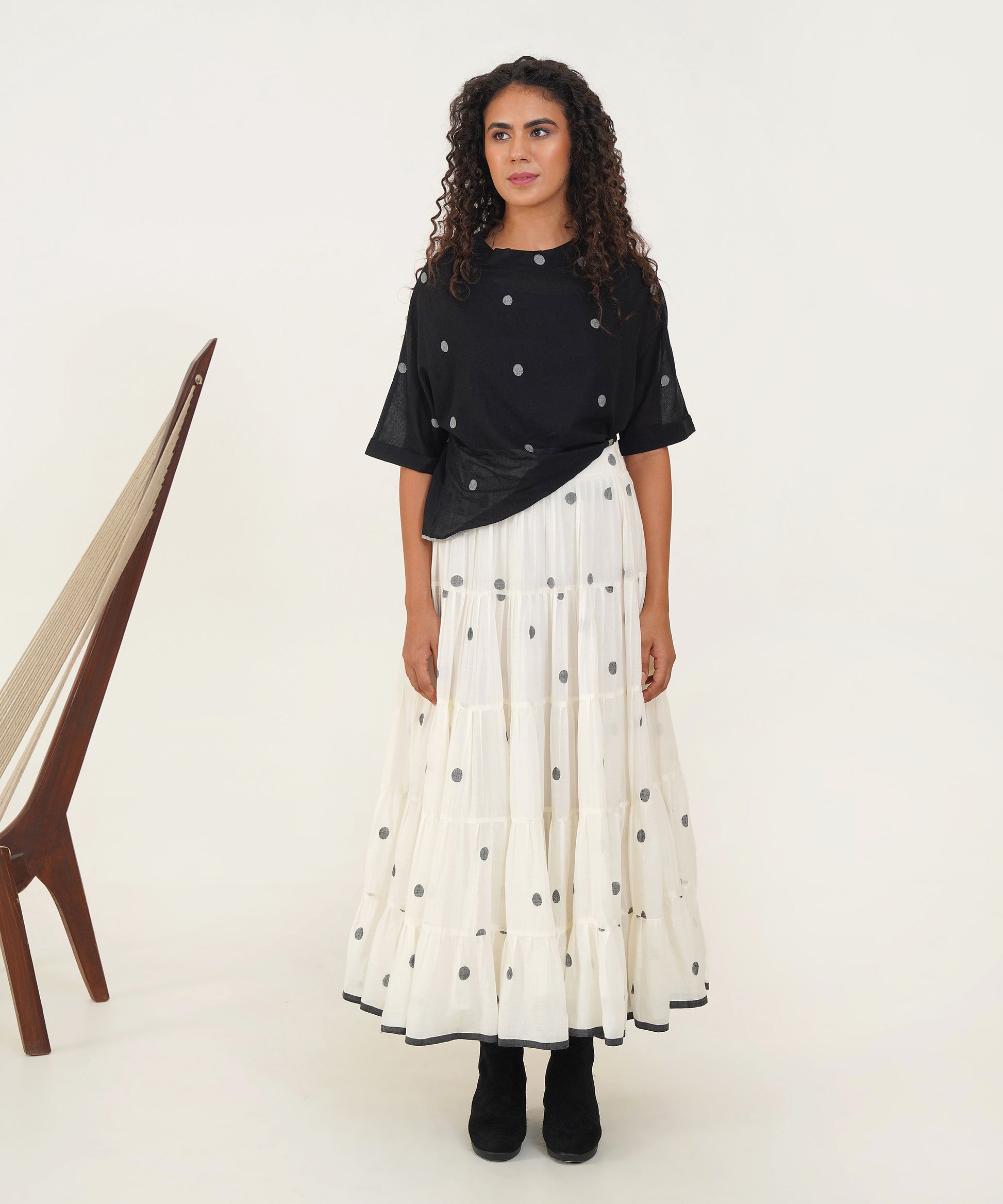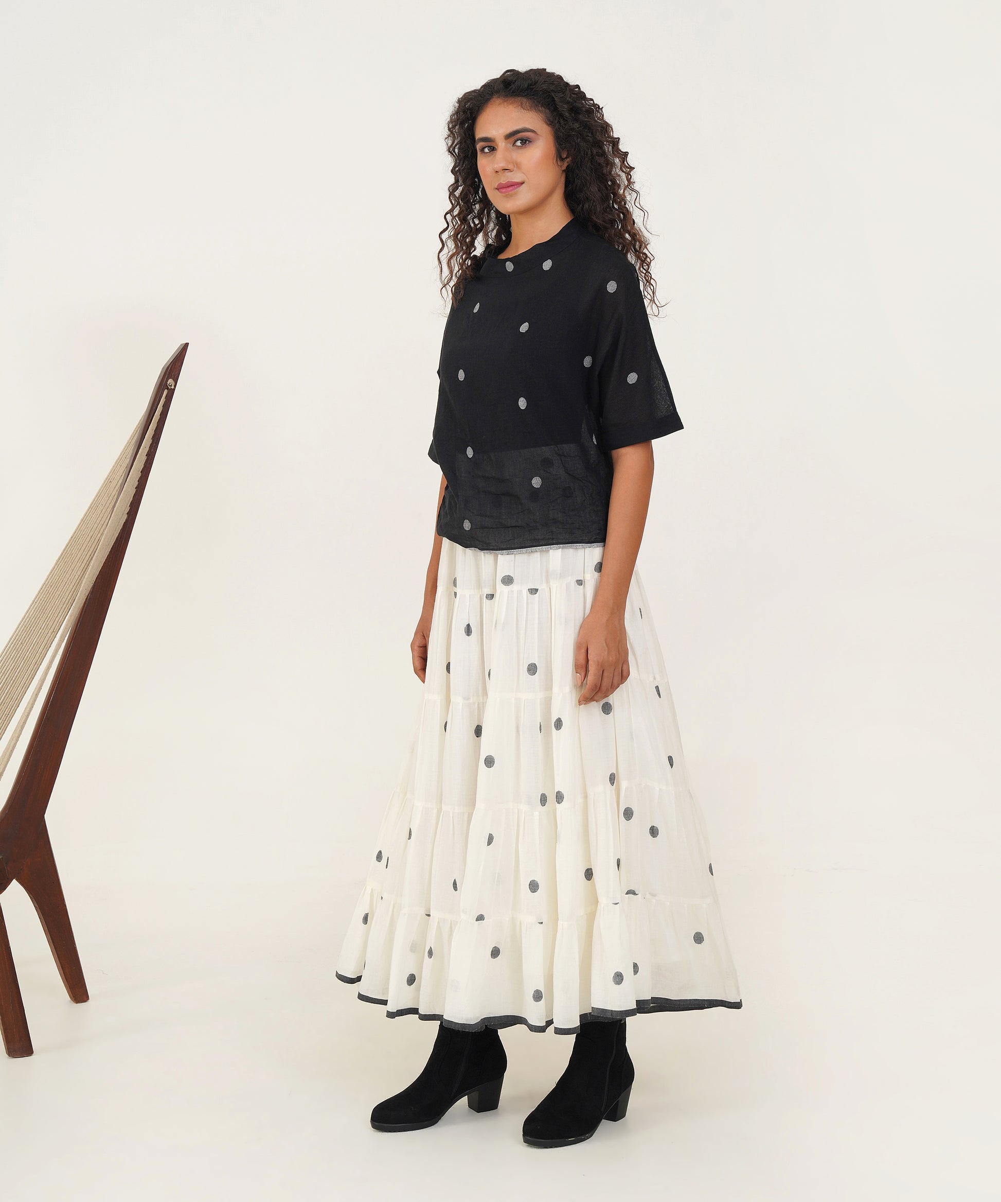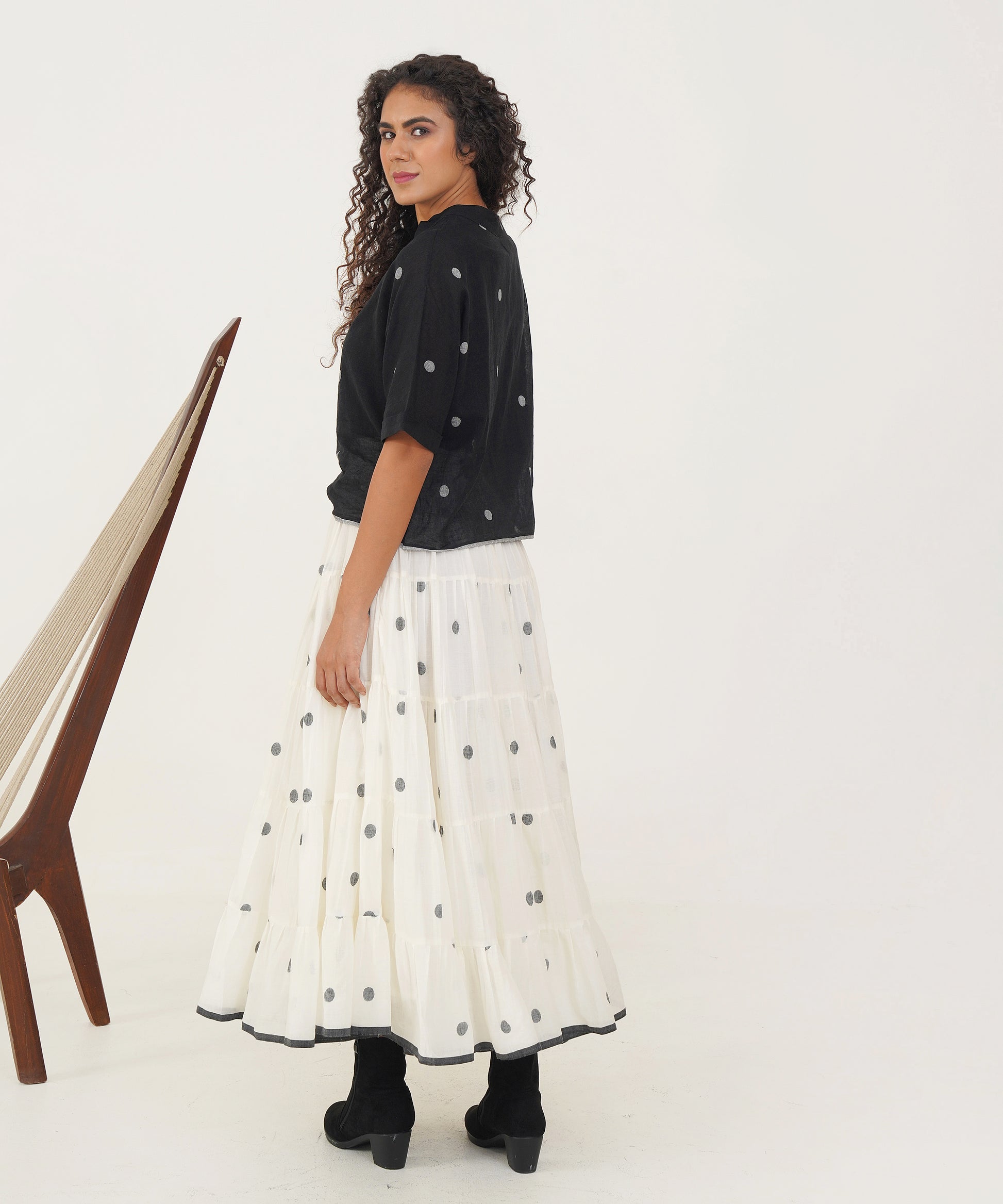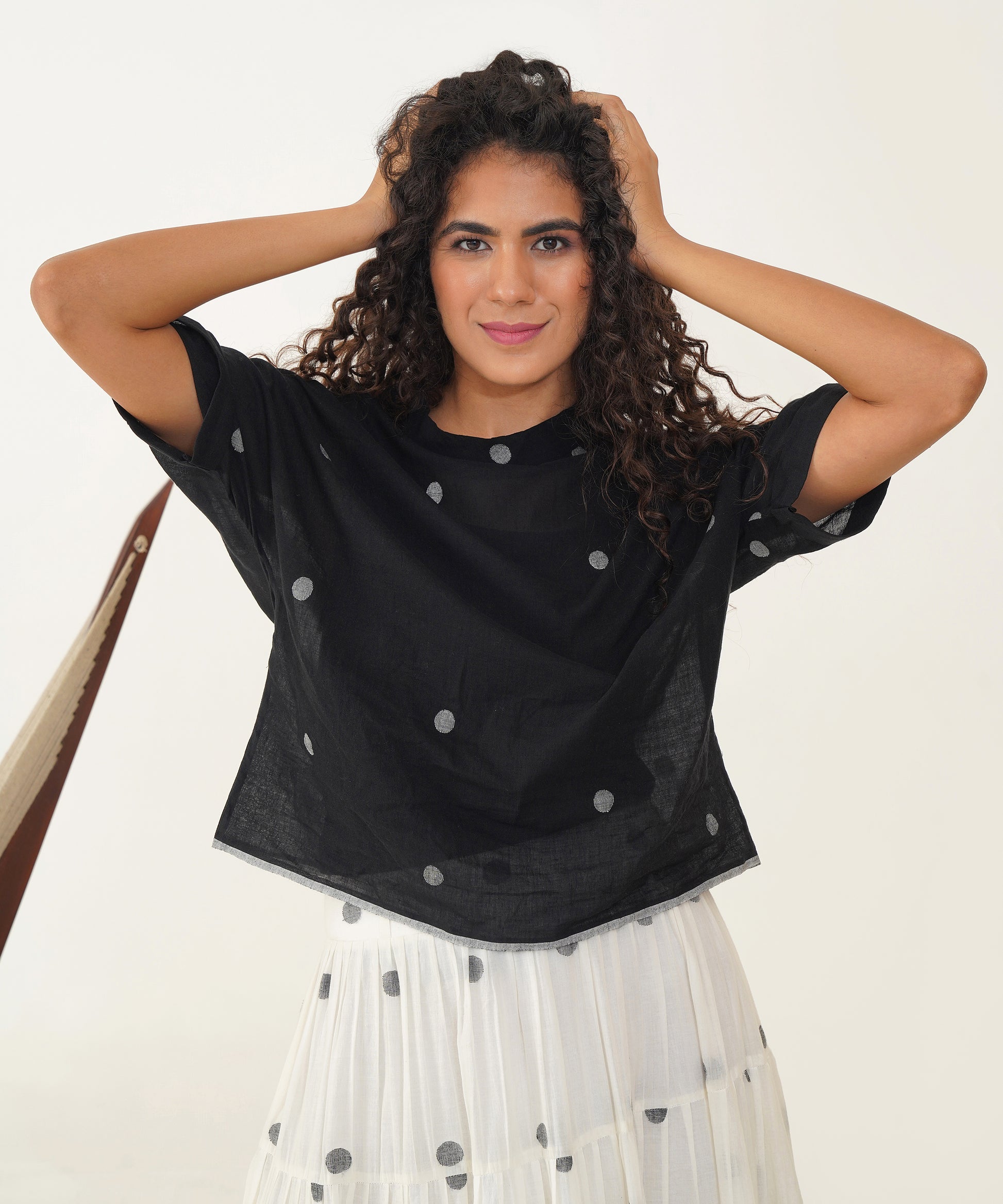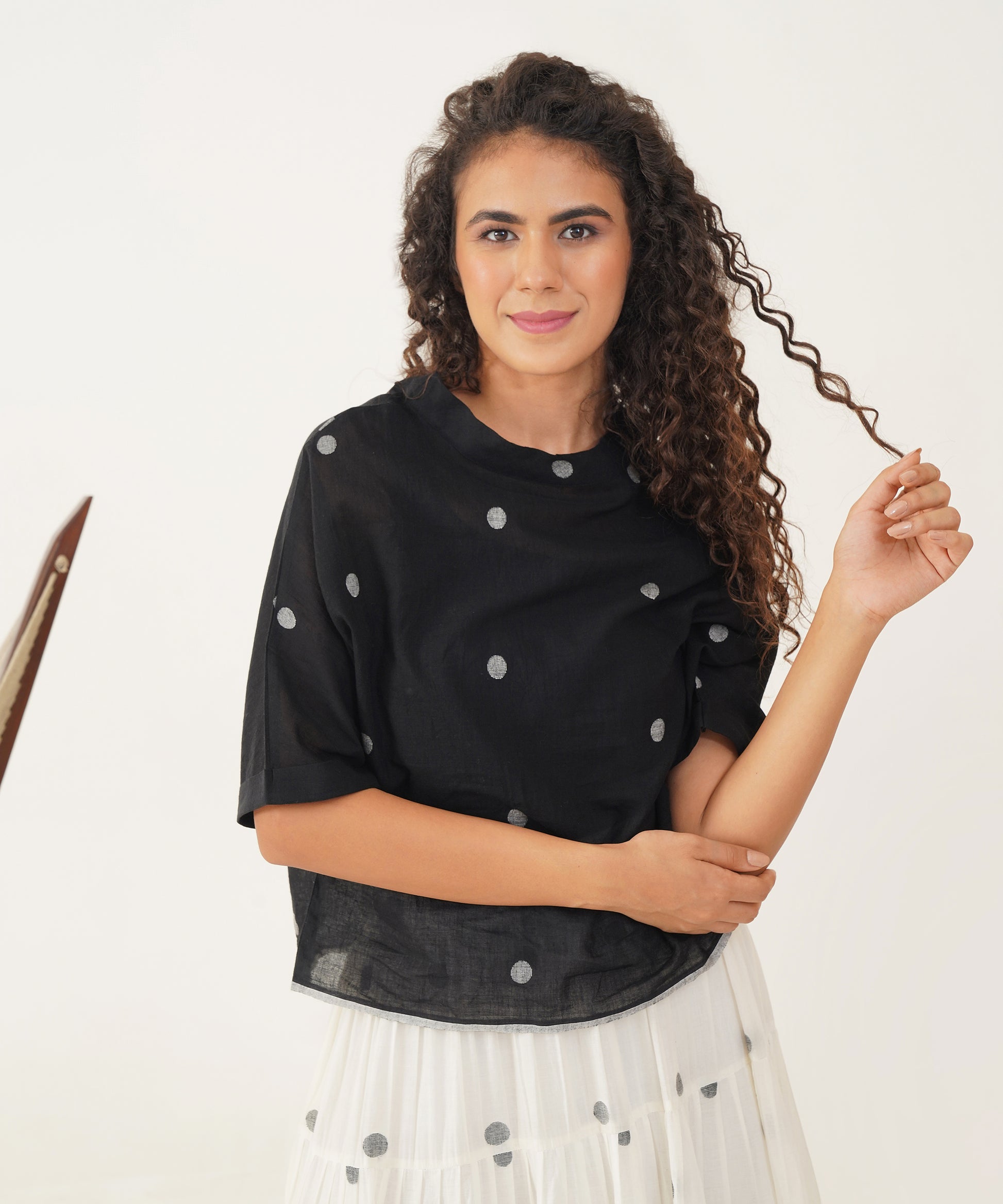 Discover effortless style and comfort with our Jamdani Boxy Top. Designed with a wide polo neck and elegantly folded sleeves, this top seamlessly combines relaxed fit with chic sophistication. The thoughtful details enhance both its comfort and visual appeal, making it a versatile piece that effortlessly elevates any outfit while making a distinctive style statement.