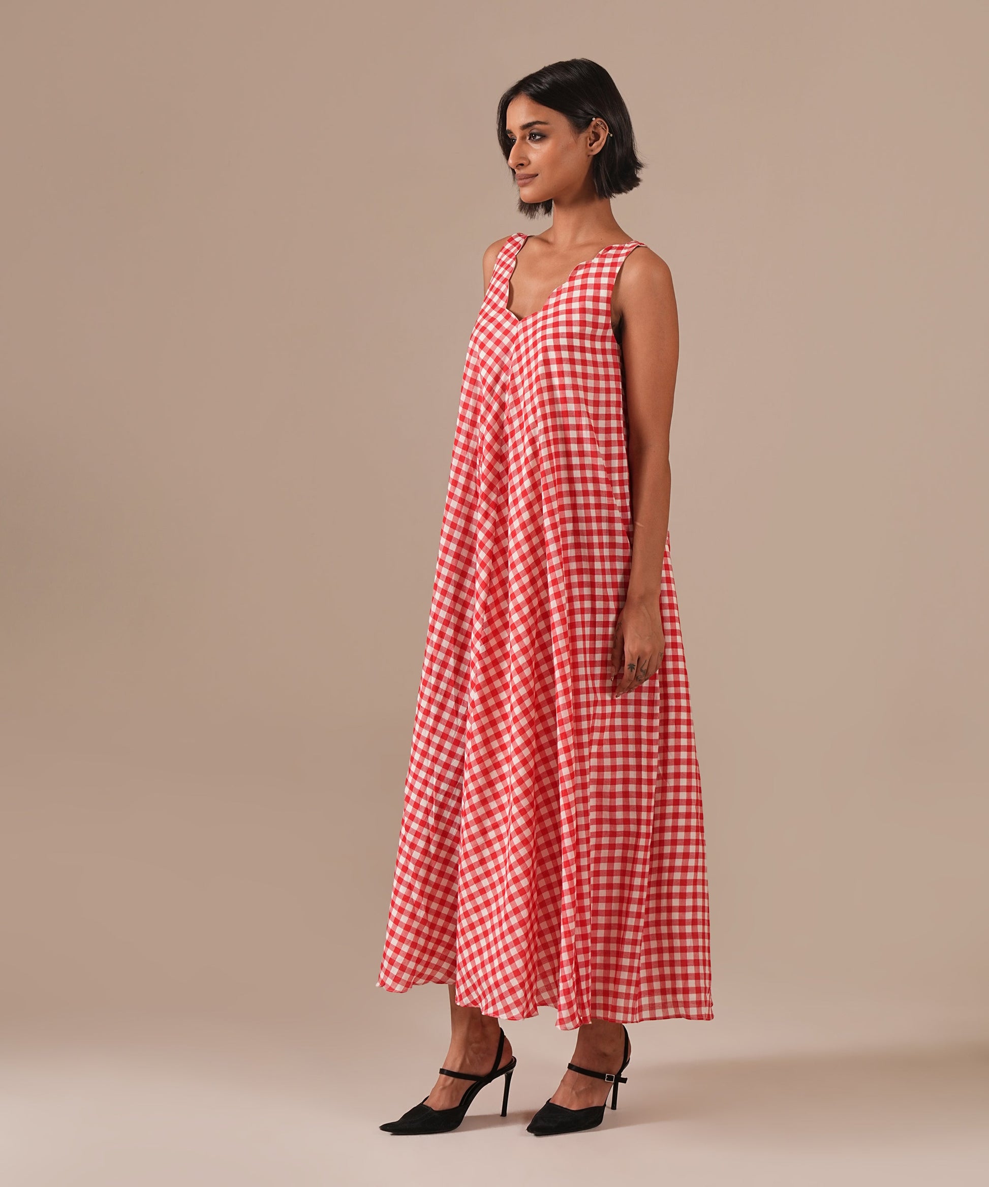 This classic maxi dress features fit and flare silhouette, scalloped neckline and comes with side pockets.