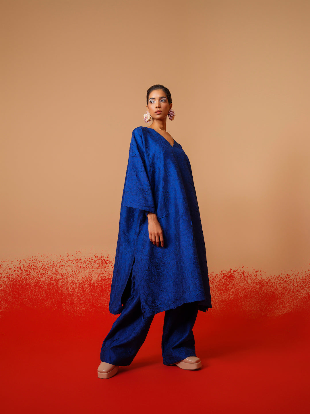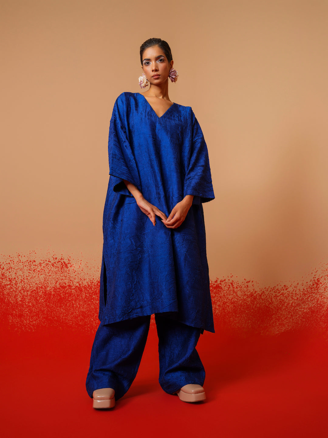 Ease carved into silk. Relaxed trousers cut in our signature crushed silk — a fabric developed and perfected within the studio. Features side pockets and an elasticated waistband — soft, fluid, and deeply lived-in.