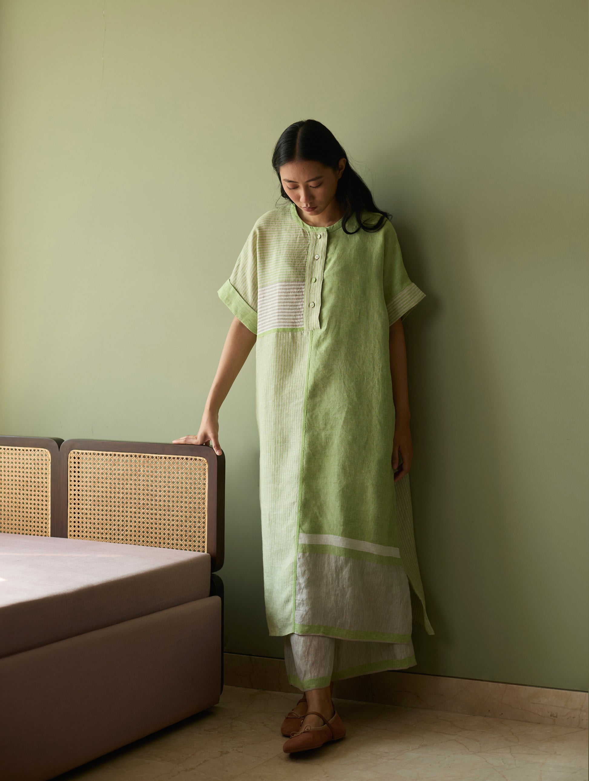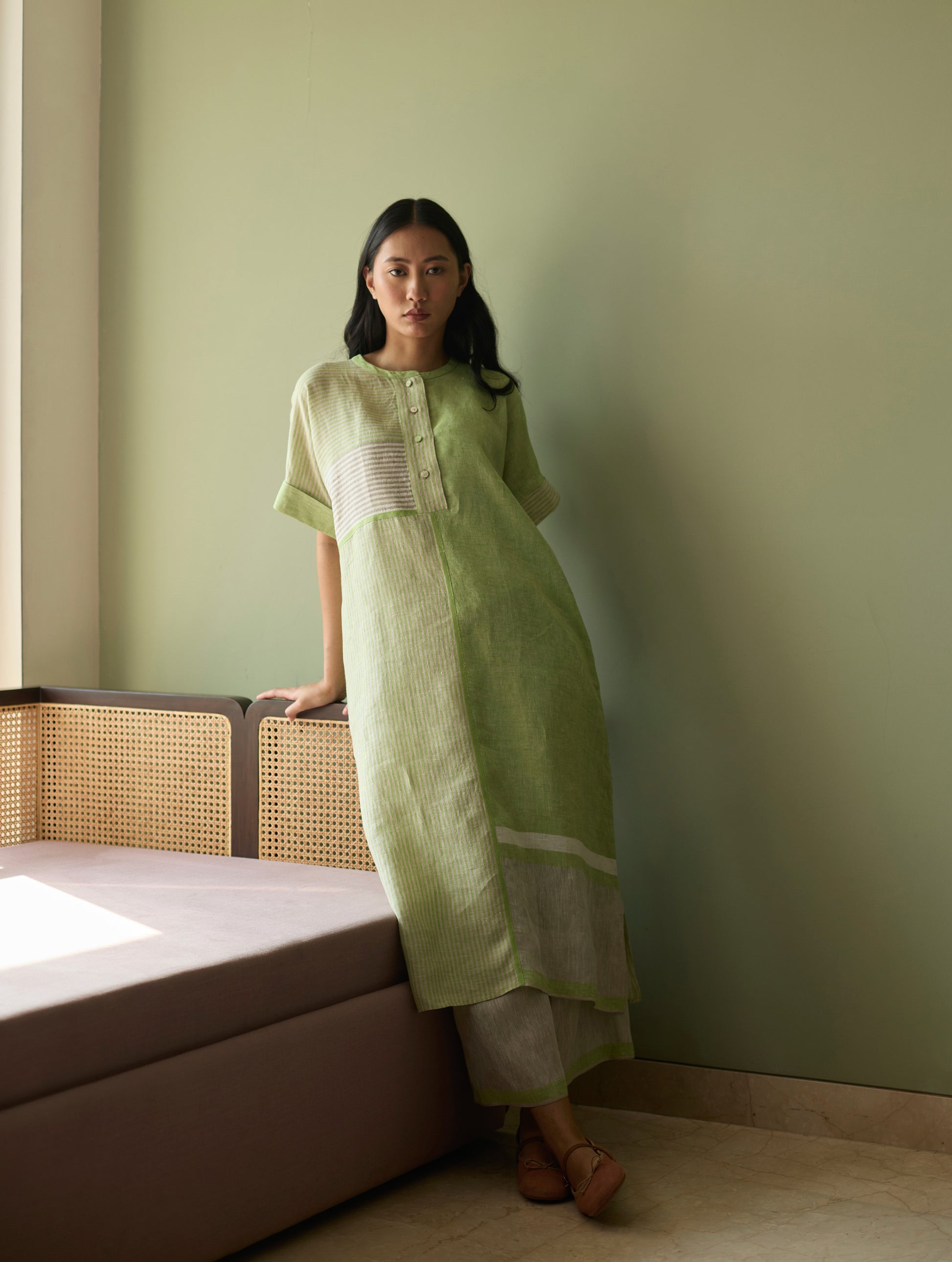 Pira Stripe Linen Tunic Kaftan Set - Meadow