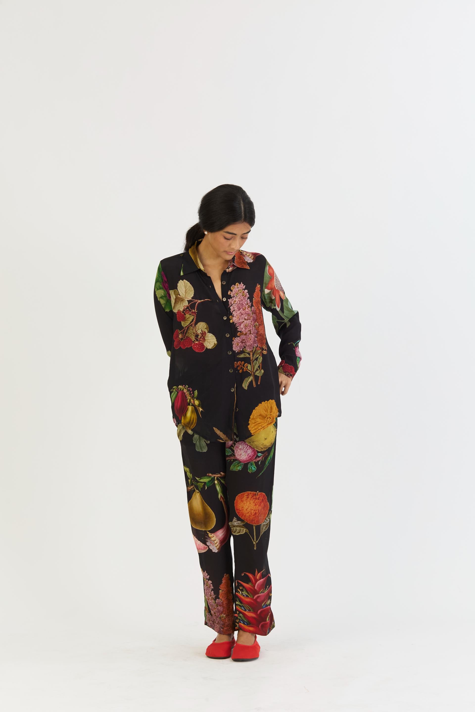 The loose-fitted shirt, meticulously crafted in breathable crepe, exudes a relaxed yet refined appeal.