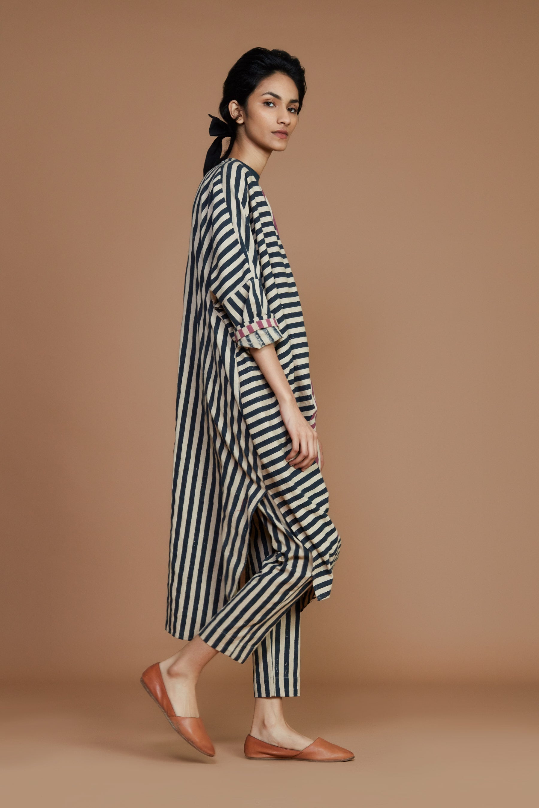 Subtle yet chic, this rib cowl tunic is perfect pick for a day out. This versatile style can be worn as a sporty-laid back look or you can team it up with delicate earrings & flats to rock the day! Complete the look with the matching striped pants