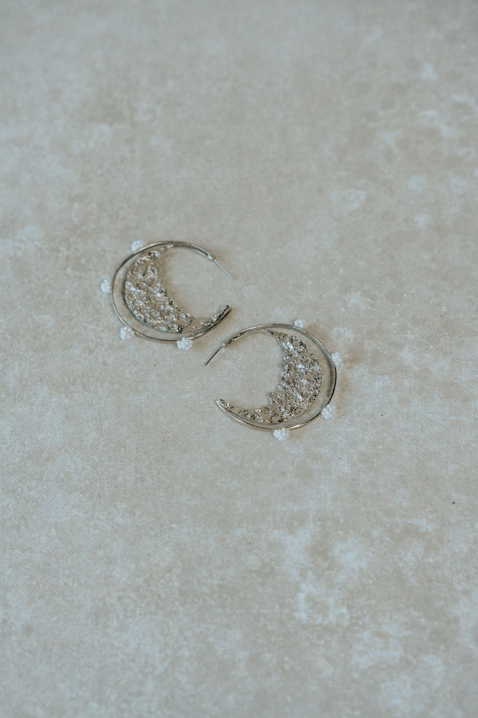 A piece of the moon crafted as hoops. If you love throwing on hoops for your looks, you will love to play dress up with these. Roshini is our first, final design from Chaand, making it special to us, hope it makes you feel special too.