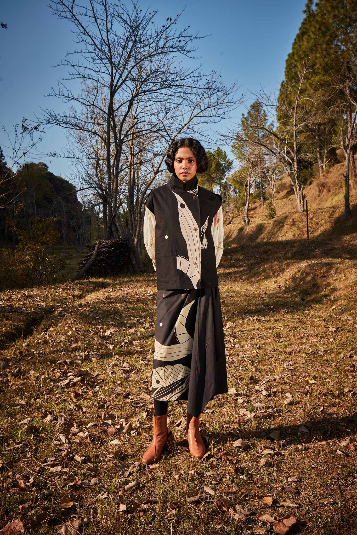 This black printed Oxford wrap skirt is a stand out piece.The wrap design offers a chic, effortless look that's perfect for any occasion, combining style and sophistication with a modern twist. Comes with pleated finishing for the extra glam.
