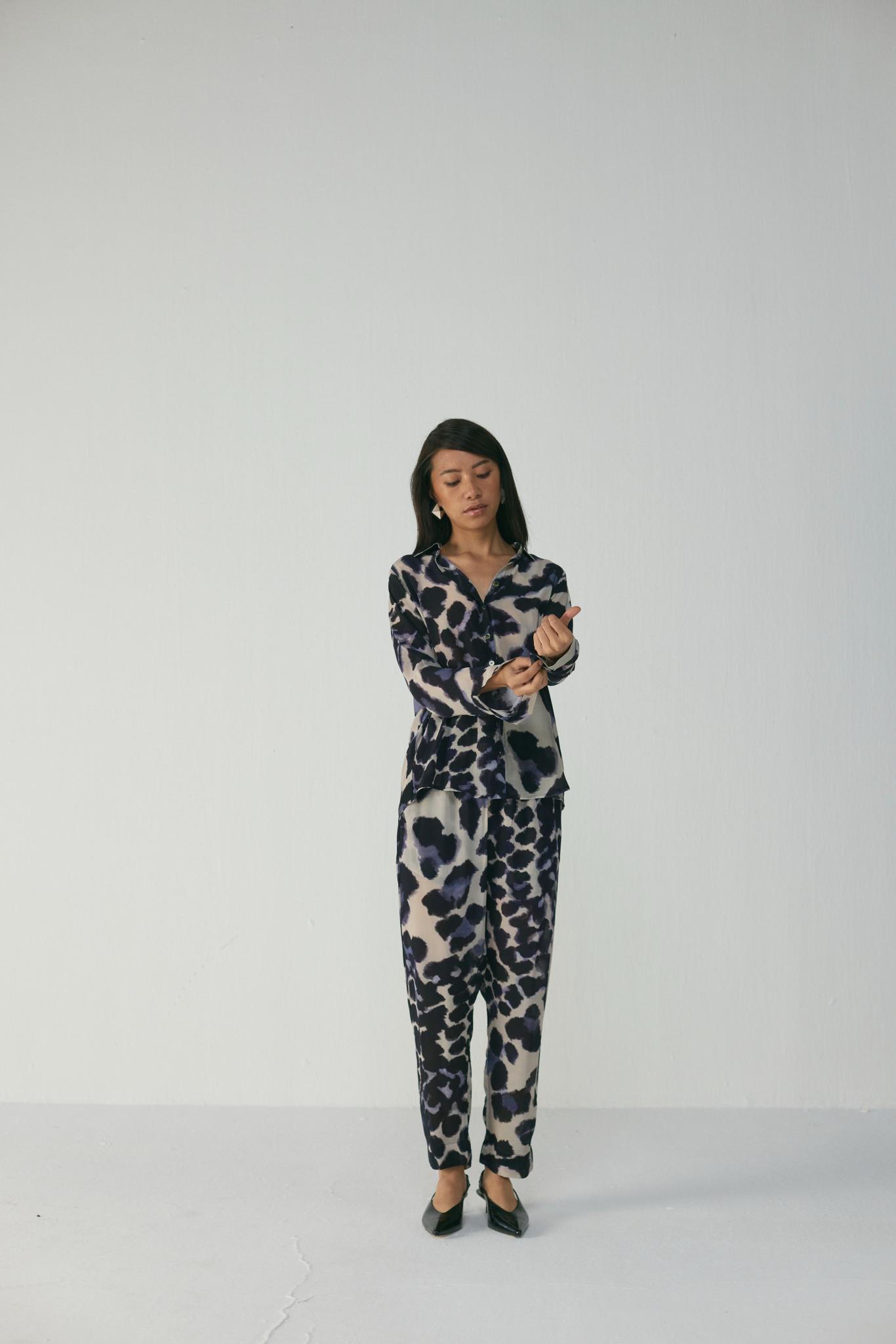 Style this set with pointed heels or loafers for a polished, contemporary look. For a casual twist, pair the shirt with denim or the pants with a solid tank and layered jewelry. Add statement earrings and a structured bag to complete your ensemble for brunch, meetings, or an evening out.