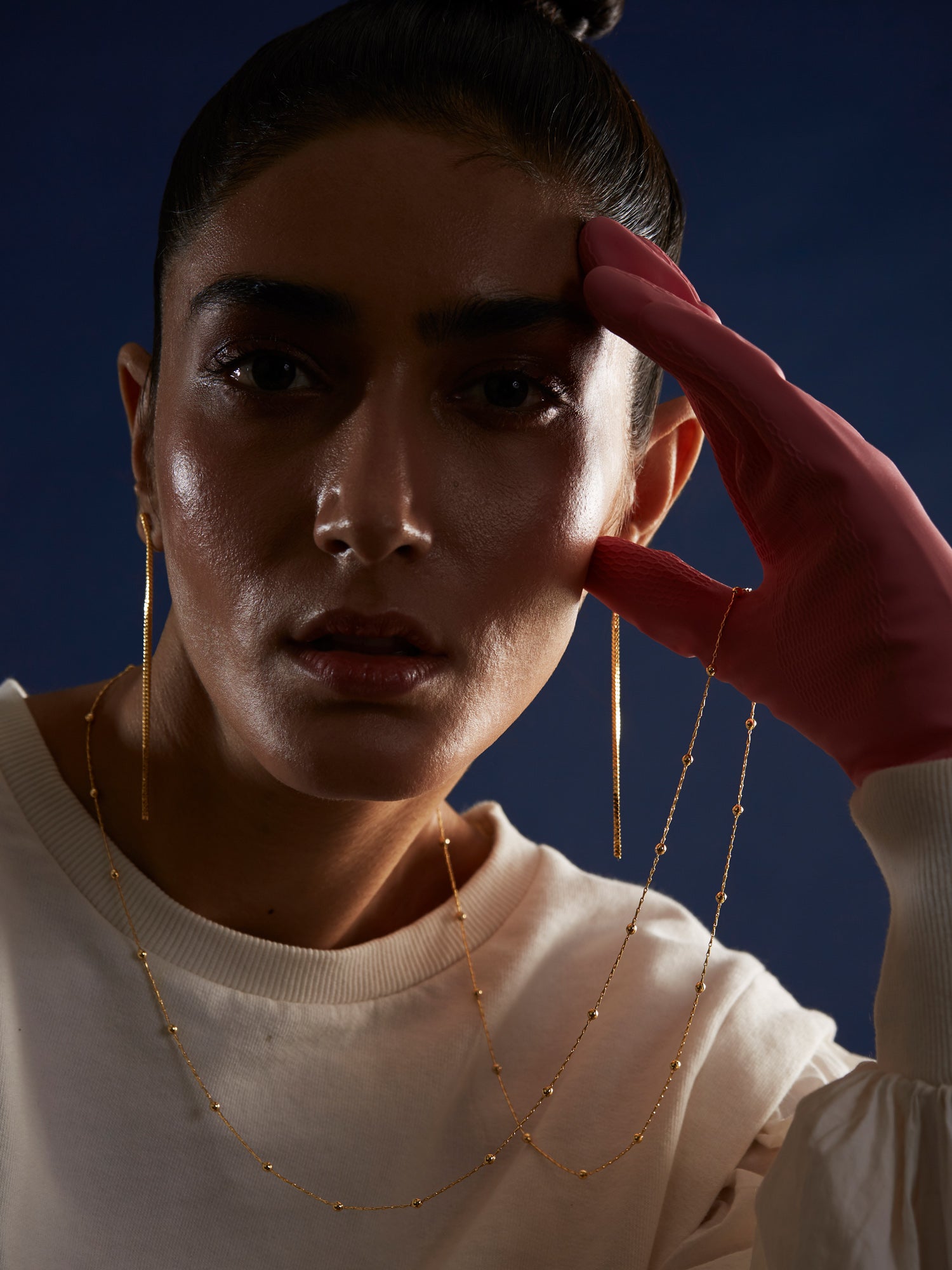 Light as air, the 'Shimmy' is a delicate, classic bubble chain that belongs in every jewellery box. A lovely length that allows it to be worn down long or wrapped in a double layer closer to the neck, this is a perfect gift for every jewellery-lover.