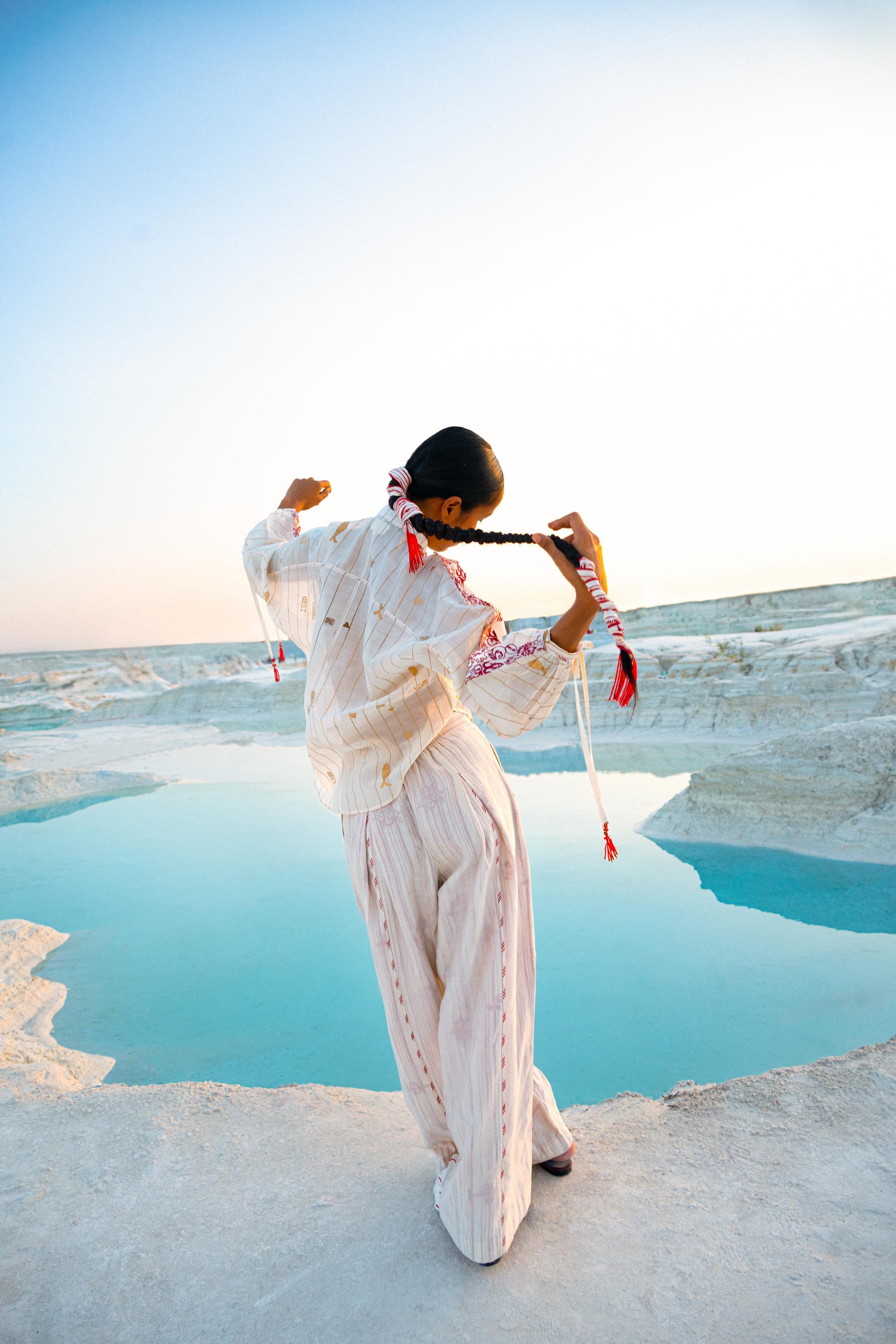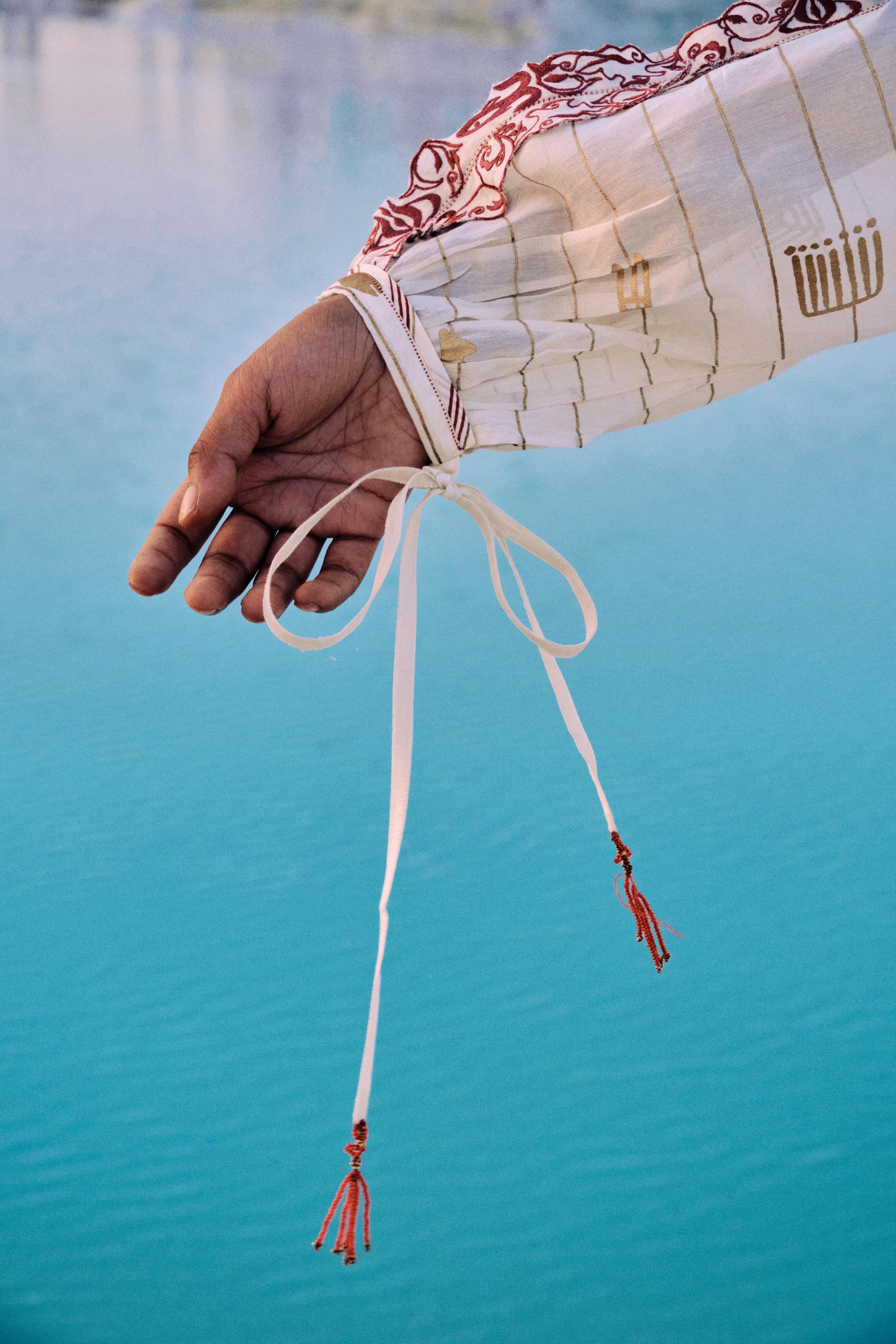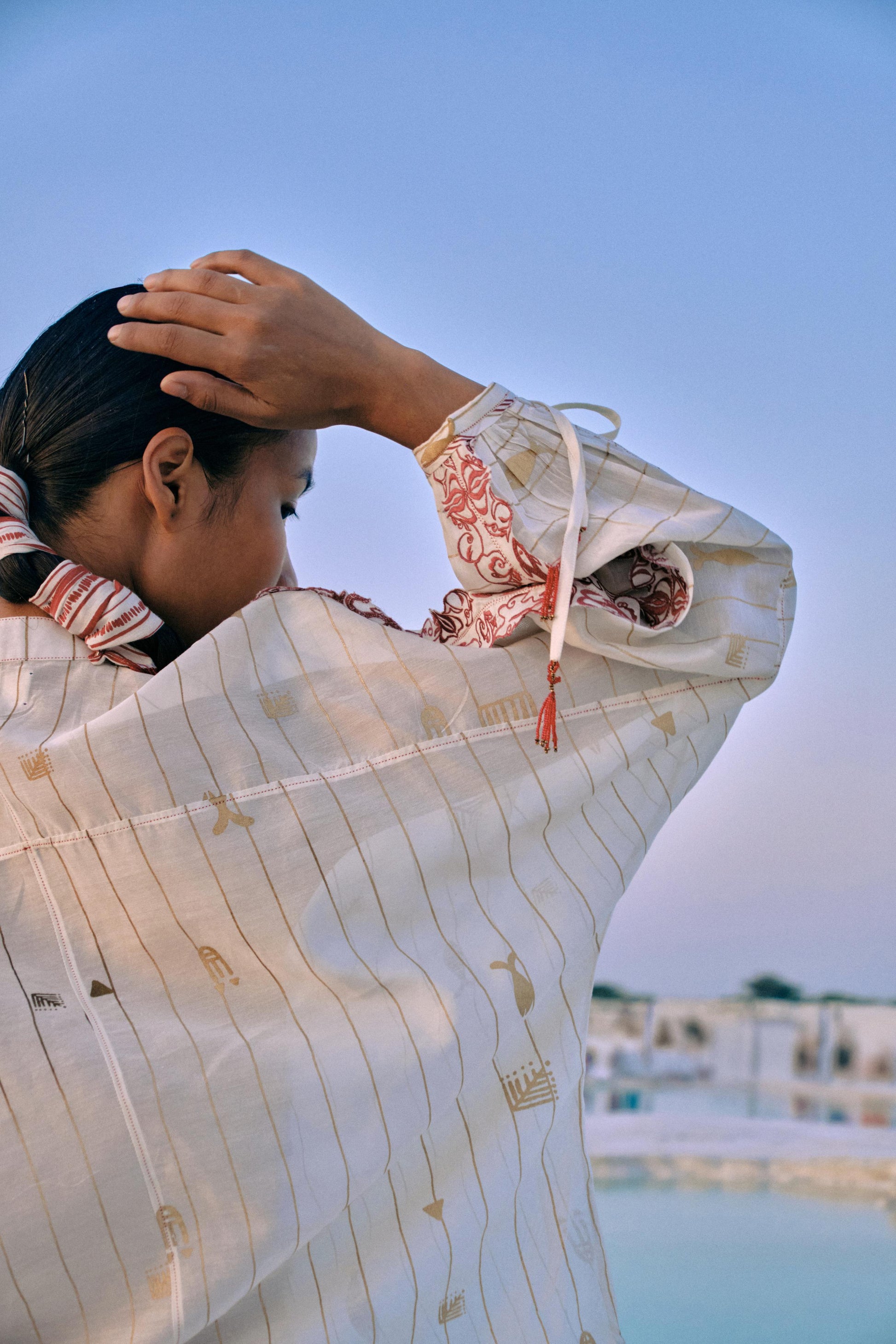 • TIE- UP WITH HANDMADE TASSELS AT THE SLEEVE