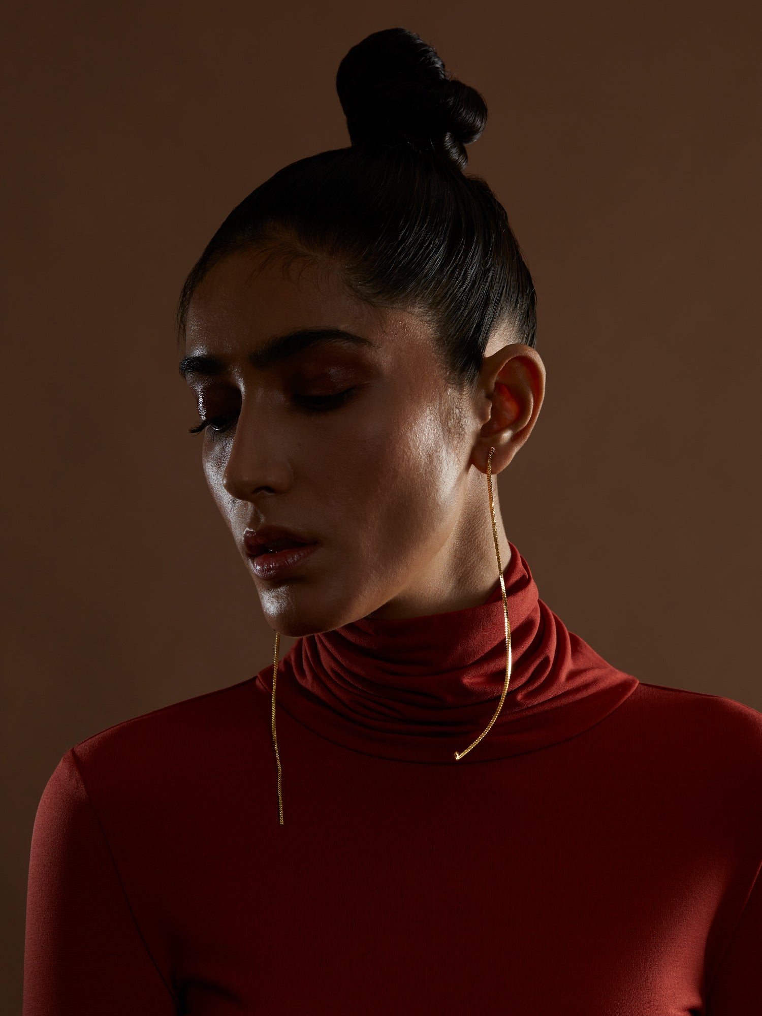 A perfect accomplice to channel your main character energy - Say hello to these showstoppers. Fluid and linear at the same time, these earrings are the definition of 'Bold-minimals'.