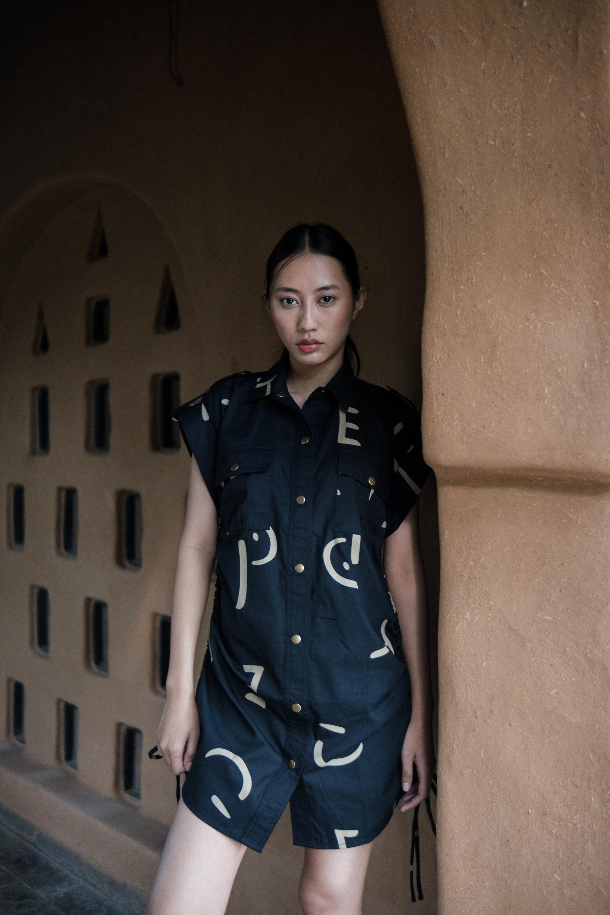 This versatile shirt can be worn as a shirt and as a dress. The side gathers lends an air of sophistication, while the inclusion of patch pockets infuses a street-inspired essence, achieving a harmonious balance of style and comfort.