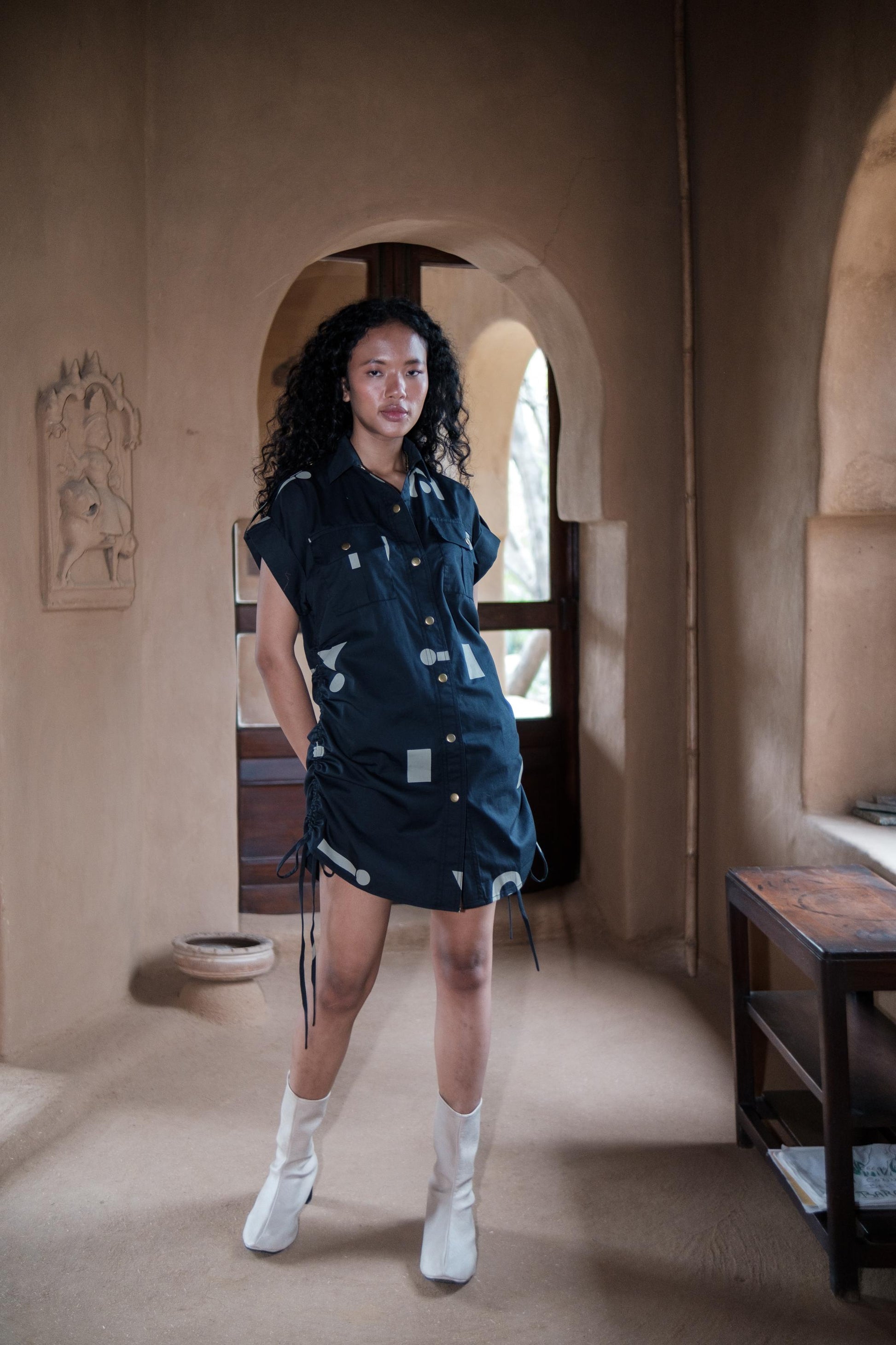 This versatile shirt can be worn as a shirt and as a dress. The side gathers lends an air of sophistication, while the inclusion of patch pockets infuses a street-inspired essence, achieving a harmonious balance of style and comfort.