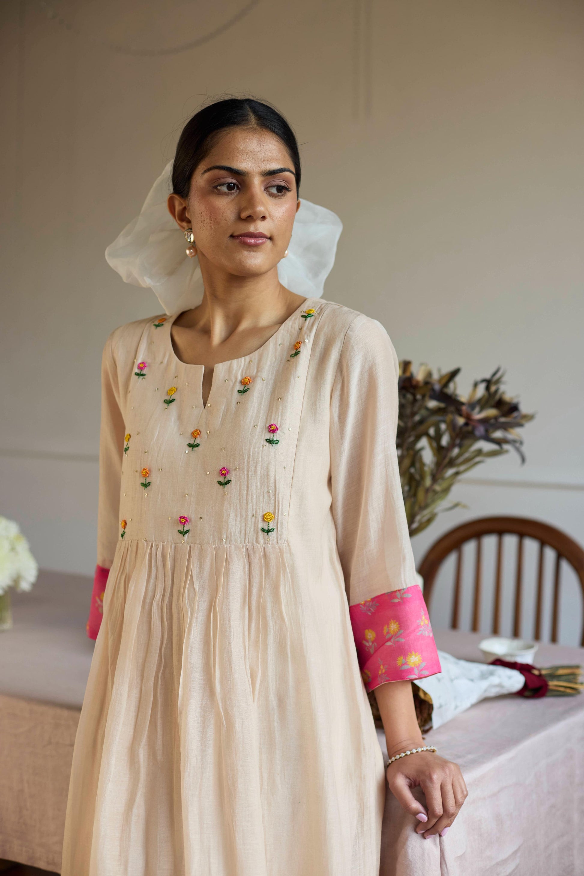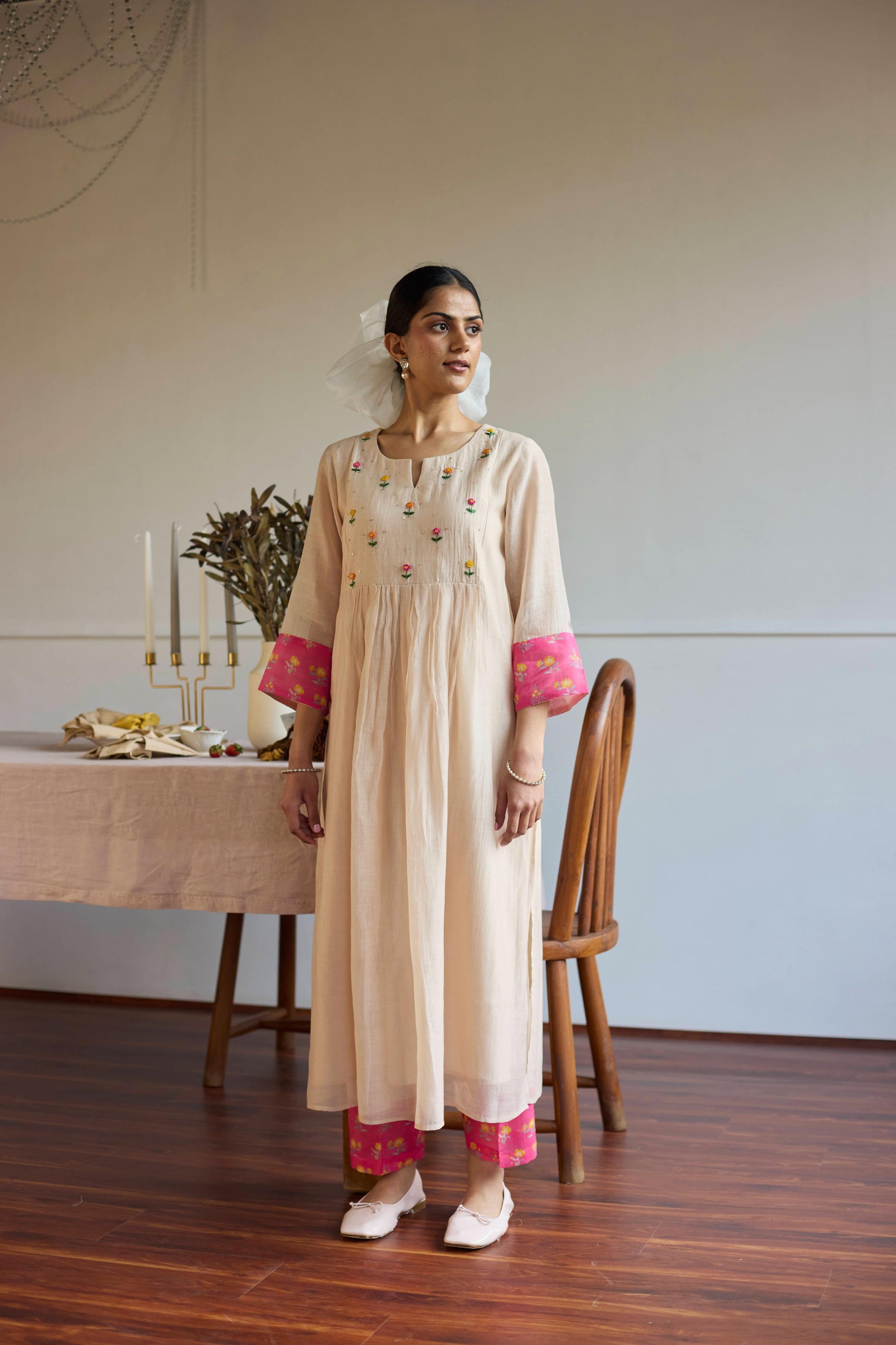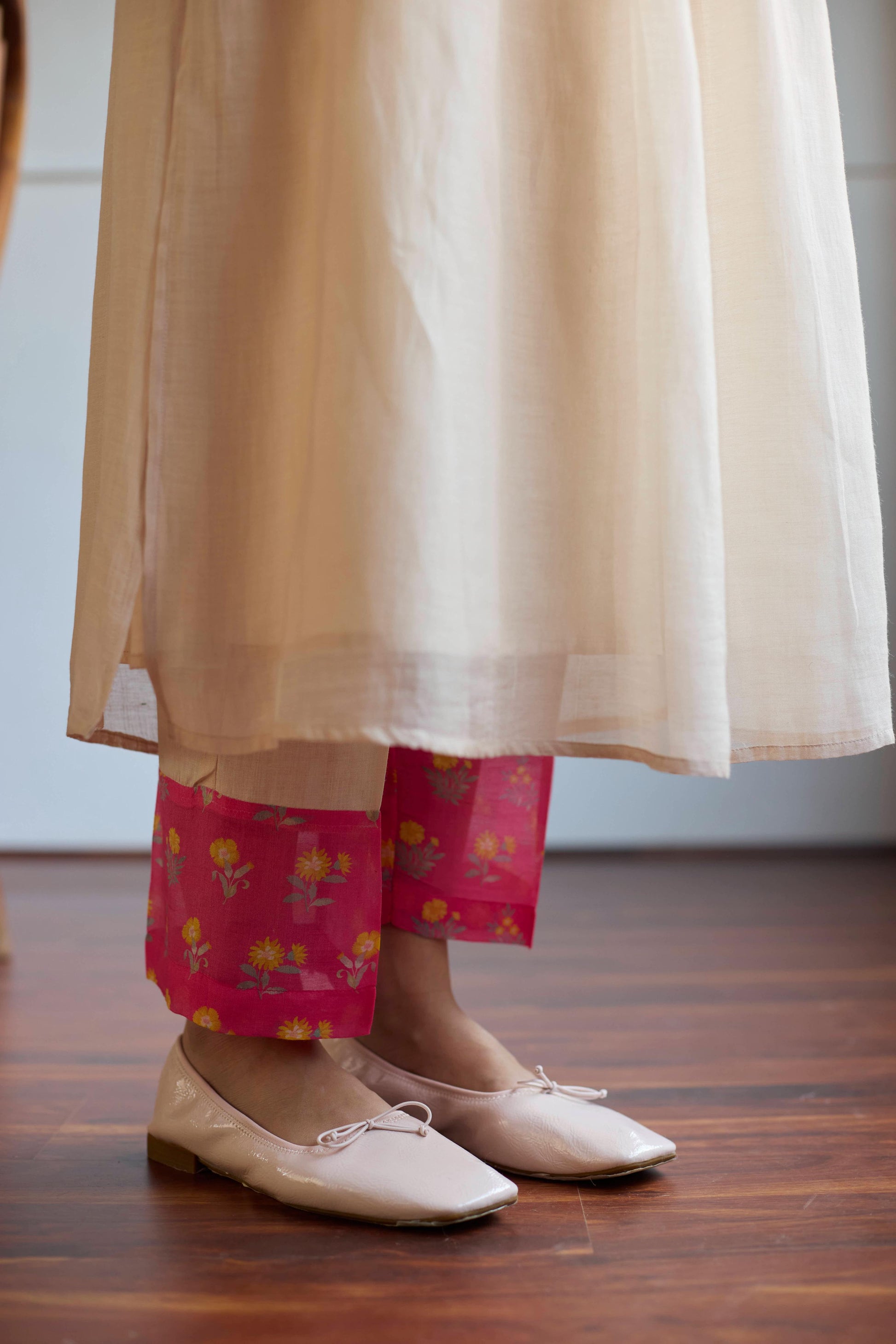 Finished with lace, soft and refined, Paired with cotton pants, effortlessly aligned, A blend of tradition, elegance, and ease, A timeless ensemble that flows like a breeze.