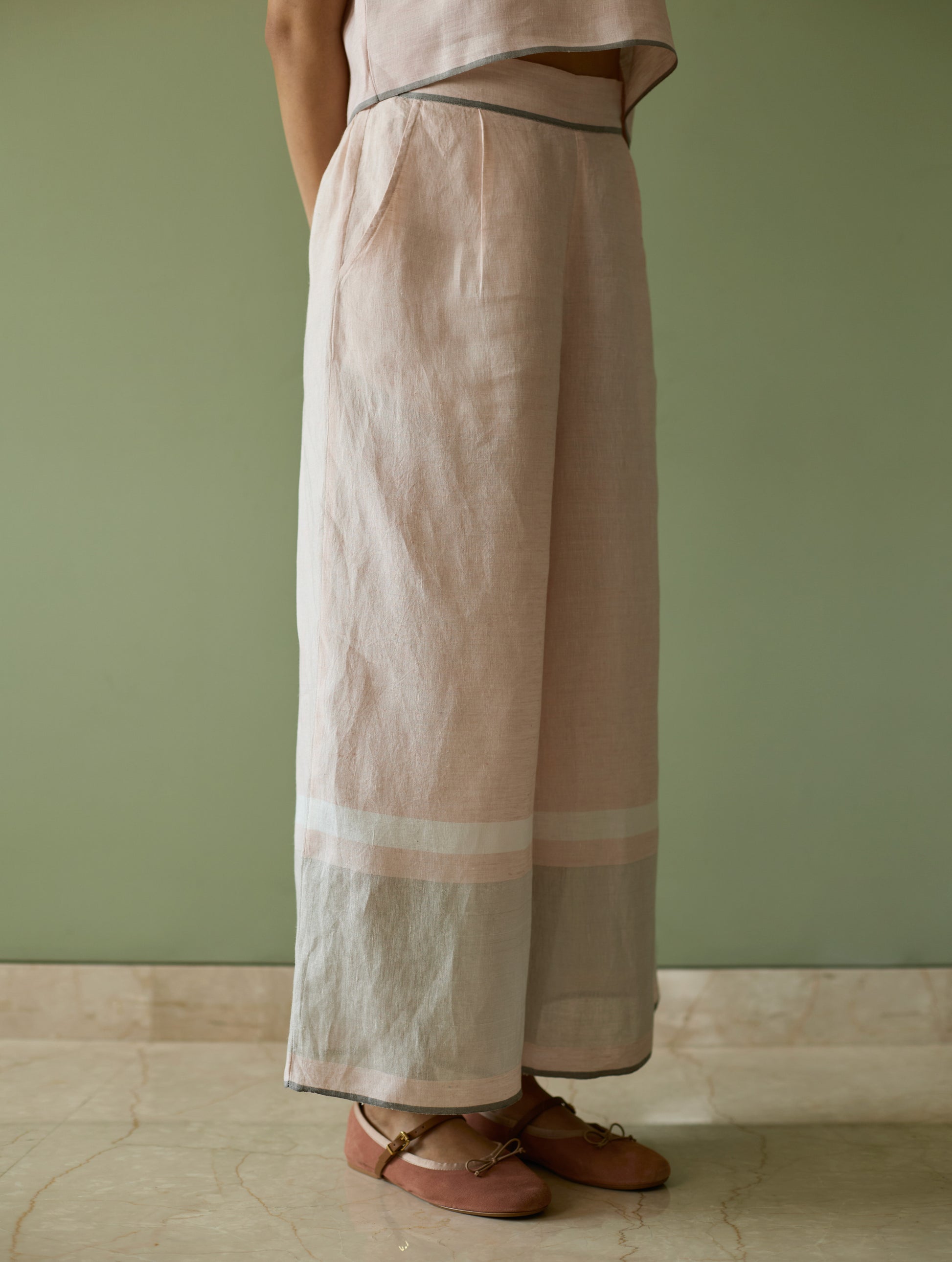 Yara Sleeveless Border Linen Kurta Set - Blush