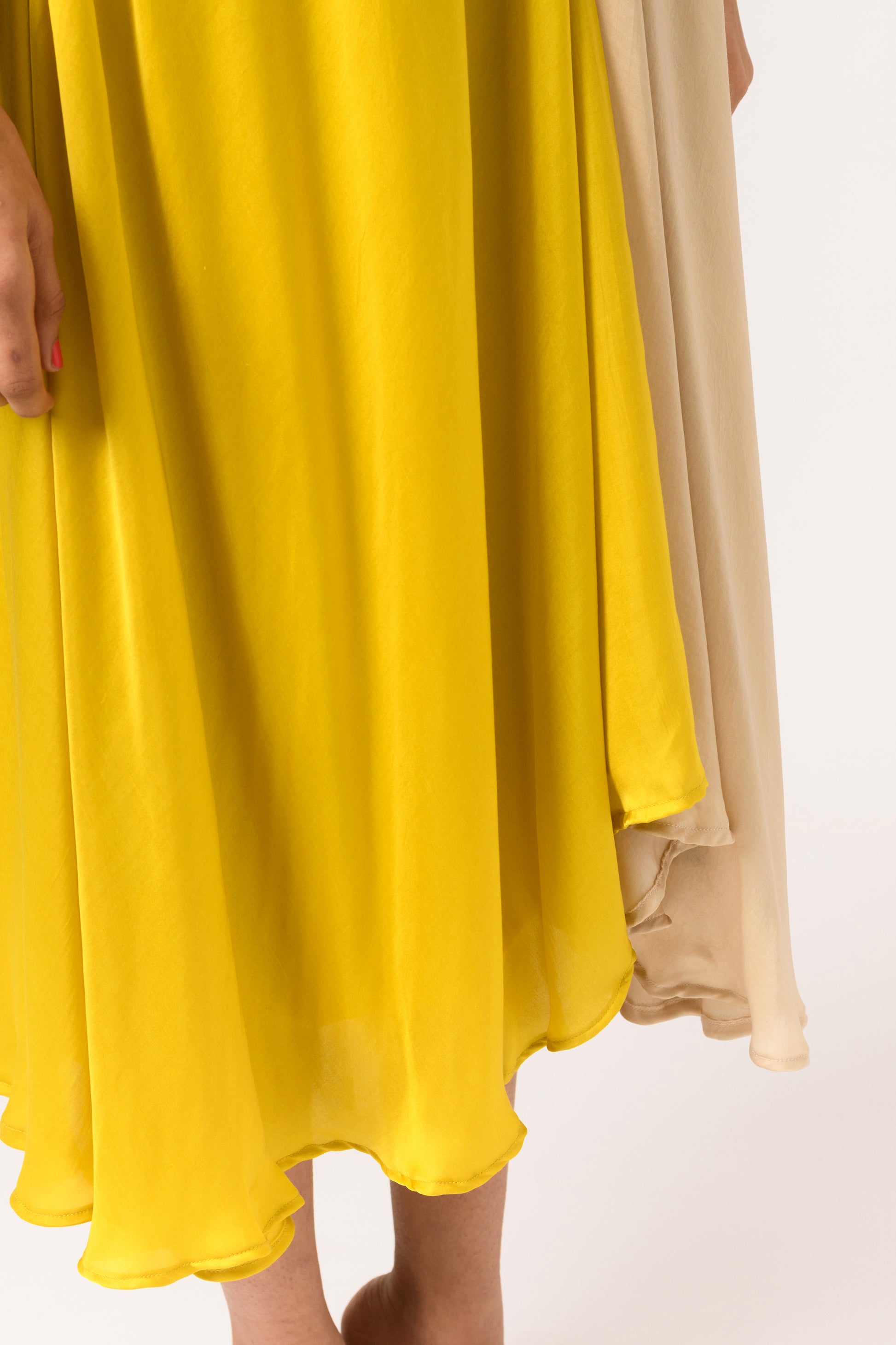 Yellow-Ecru Cap Sleeves Midi Drape Dress