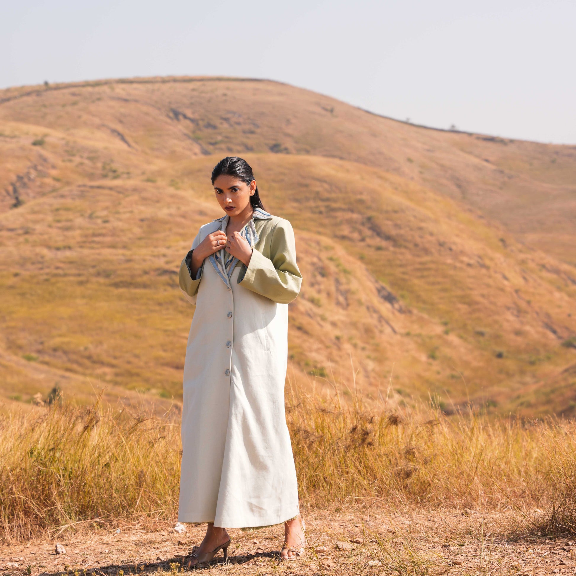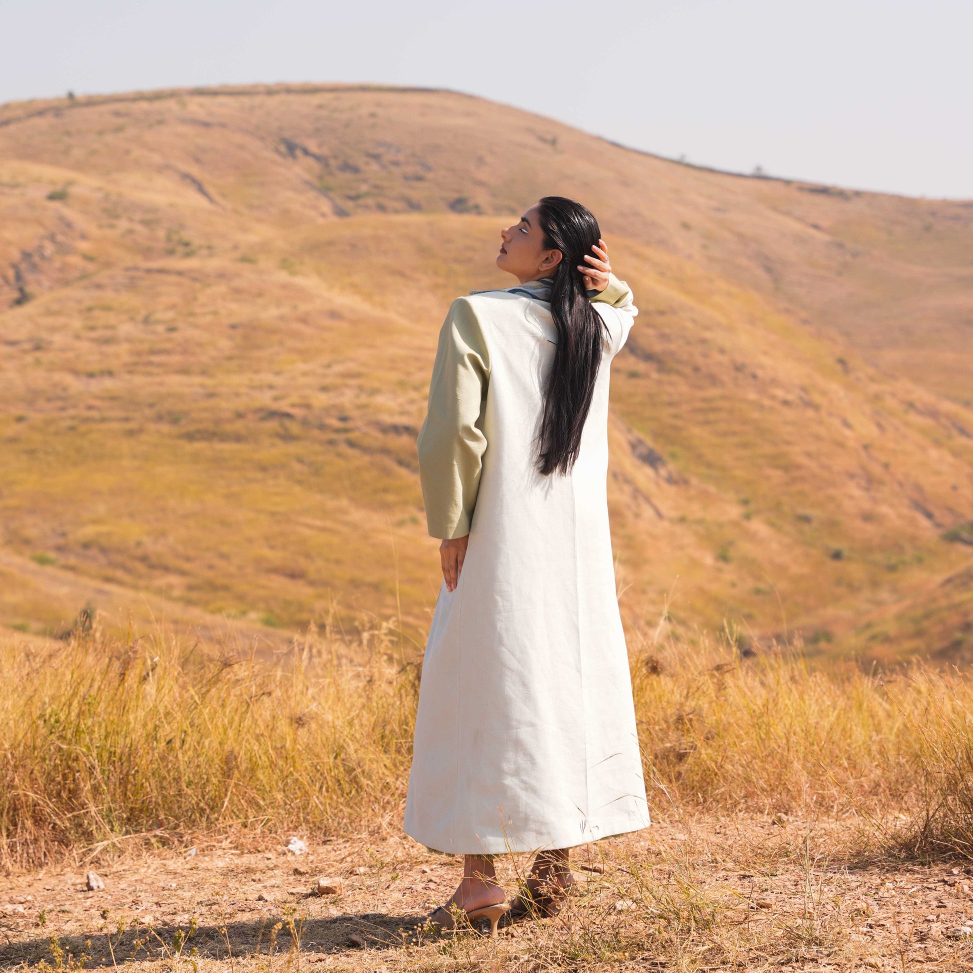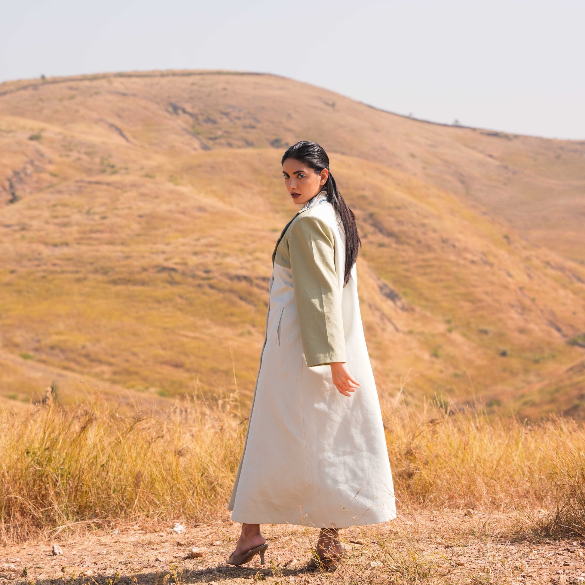 Elevate your wardrobe with our Dress featuring an Italian collar, epitomizing timeless sophistication. This dress is adorned with minimal floral applique details, delicately enhancing the neckline and adding a touch of refined elegance.